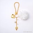 バッグチャームはキーアイテムである「鍵」モチーフにしたデザインに、シフォン素材のフラワーを添えた可憐なチャームに仕上がっており、ワンポイントとしてスワロフスキークリスタル(スワロフスキーパール)があしらわれています。