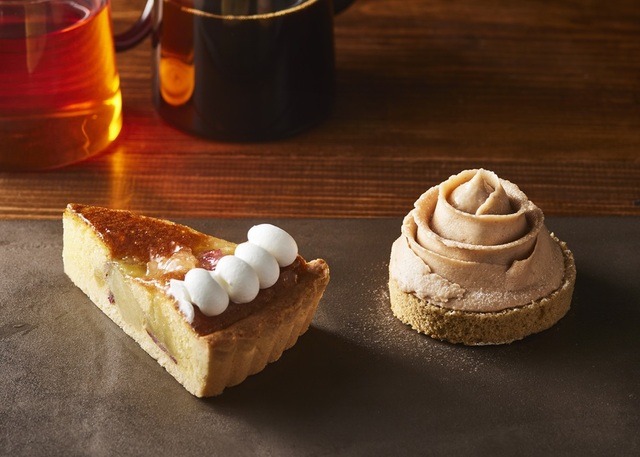 鹿児島県産の「紅はるか」と「ふじ」を使用した秋らしいタルトケーキ。酸味と甘みのバランスが良く、「ほっこりOIMOラテ」との相性も抜群です。