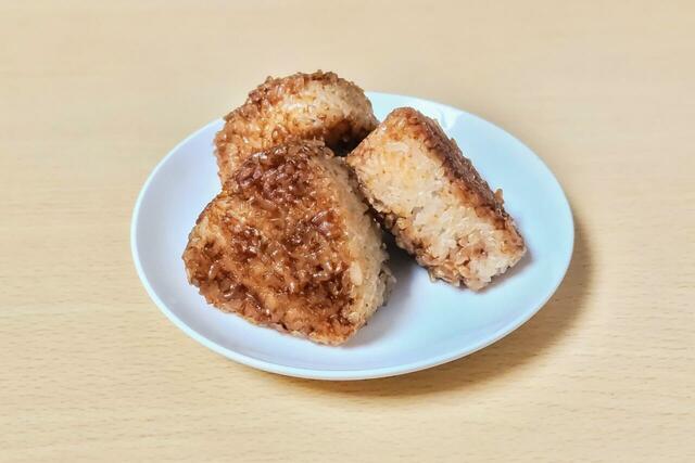 出来上がった焼きおにぎりは柔らかい食感で、お米のモチモチ感もバッチリ。お焦げの香ばしさと、醤油の甘じょっぱい風味に加え、昆布とカツオの出汁が効いた、奥深さのある味わいです。