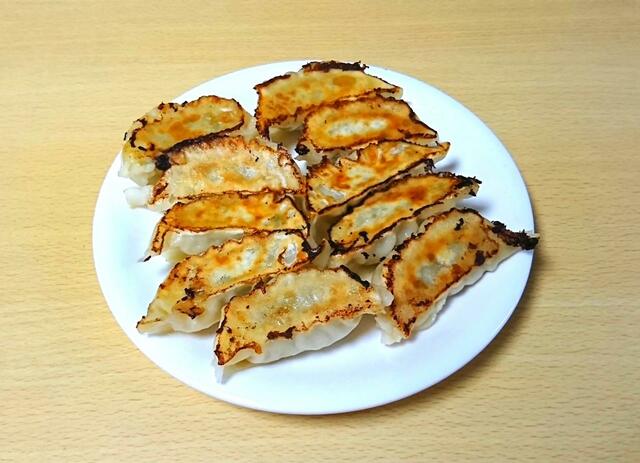 ちなみに、餃子同士の皮がくっつきやすいので、フライパンに並べるときは少し間隔を空けるようにすると良さそうです。