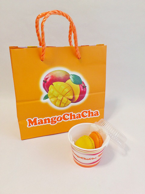 テイクアウトメニューもあって、その中からマンゴーのマカロン2種を購入。