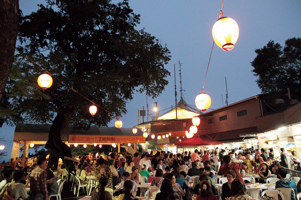 夜景を見ながらビールを味わえる海抜500mの位置にある高尾山の特設会場。ワインやハイボールなどの各種アルコールが楽しめるほか、和洋中の料理とチョコフォンデュなどのデザートも食べ放題。ハイネケンデー、ビアマウント祭り、餅つきなどの催しにも注目だ。
