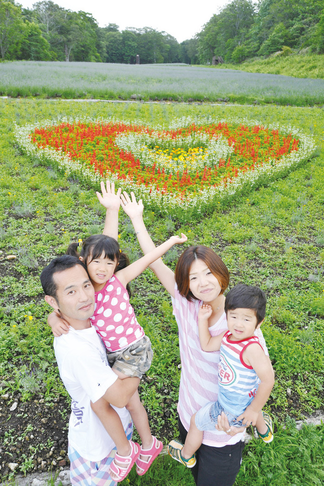 昨年から登場した新名所。色とりどりの花でかたどったハートの前で、ファミリーで記念撮影をしよう。