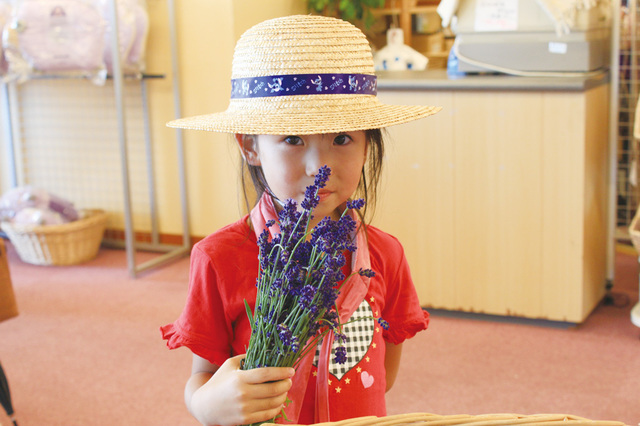 持ち帰っても楽しめる、毎年大好評の「ラベンダー摘み取り体験」。摘み取ったラベンダーは、持ち帰ってドライフラワーやポプリにして堪能できる。夏休みの宿題対策にも。(1日先着20名、500円/1回)