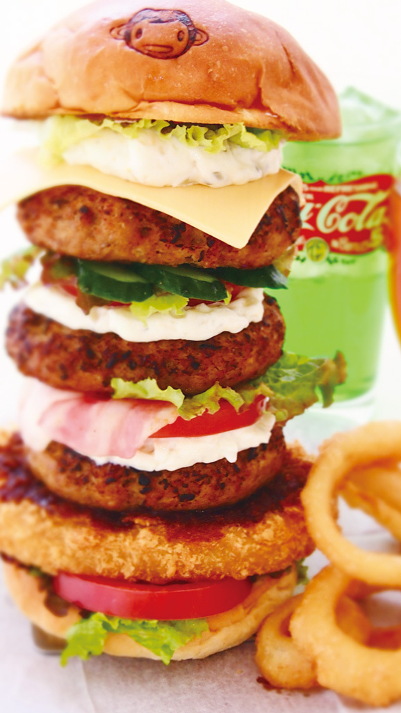 高さ20cmの超特大バーガーは、限定1日20食。家族でシェアすればさらにおいしい。