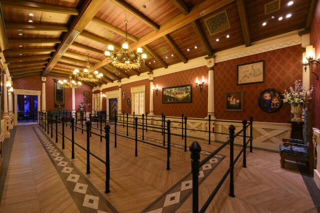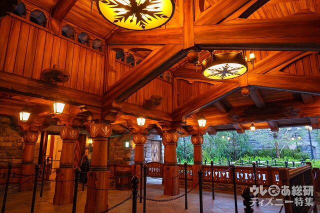 アレンデールの紋章を型どった大きなレリーフや、北欧らしさを演出しているへリンボーン柄のドアなど、細かいデザインに注目しながら、アレンデール王国の温かな雰囲気を楽しんでみて下さいね。