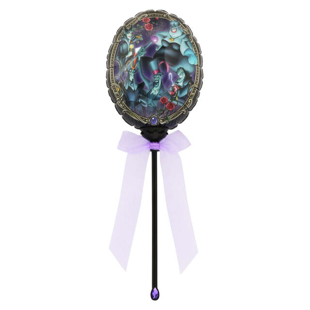魔法の鏡のような楕円型のバルーンの中には、ファシリエ、ジャファー、マレフィセント、アースラ、フック船長の姿が。