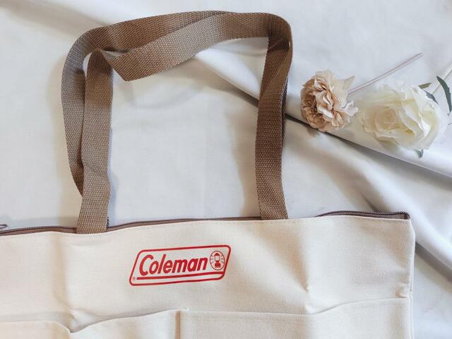 コールマン(Coleman)のトートバッグのカラーは、アイボリー×カーキの落ち着いたデザイン。