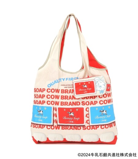 牛乳石鹸のやさしくて清潔なイメージを残しつつ、アメリカンビンテージを意識したグラフィックを用いたトートバッグはインパクトもあって、可愛くておしゃれ! 牛乳石鹸をイメージしたようなポーチがついているので、合わせて使いたいですね。