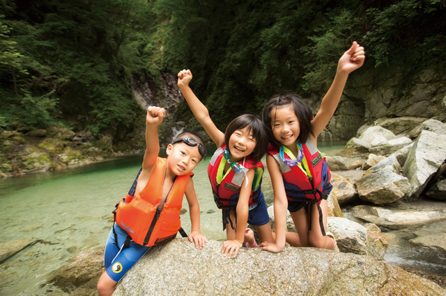 空にはまぶしい太陽と真っ白な入道雲…夏といえば水遊び。透き通った清流ポイントで生物を探したり、楽しみ方は沢山。川遊びで親子の絆を深めよう。