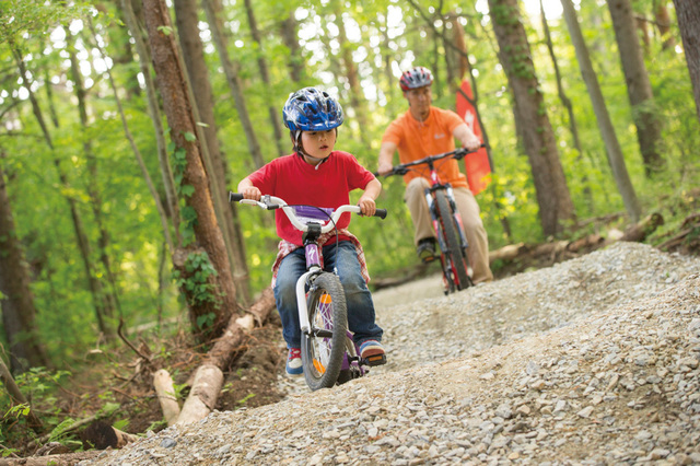 キッズの自転車デビューを専任スタッフが徹底サポート。上達のステップを踏んでレッスンするので、初心者でも安心して楽しめる。