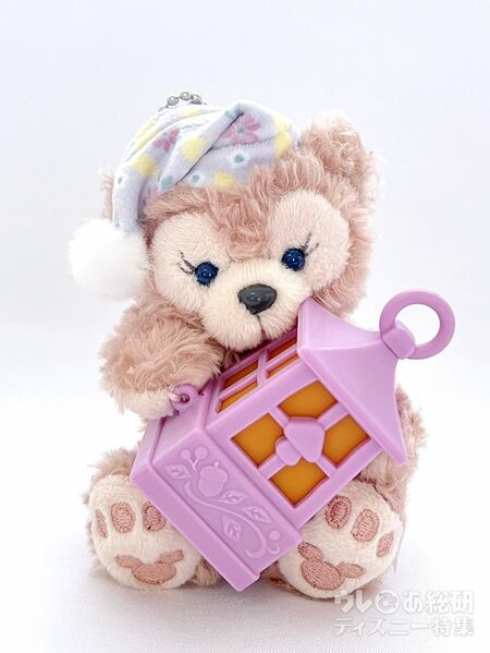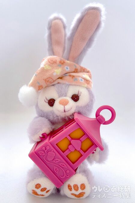 少し緑がかった青色のランタン、水色地にキノコ、木の実、そしてリーナちゃんのイメージ、チョウの柄のキャップ。