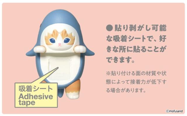 「HIPPERS mofusand」は、貼り剥がしが可能な吸着シートで、好きなところに貼ることができるフィギュアです。パソコンやスマートフォン、フォトフレームなどさまざまな物に取り付け可能で、キャラクターたちが日常をそっと彩ってくれます。
