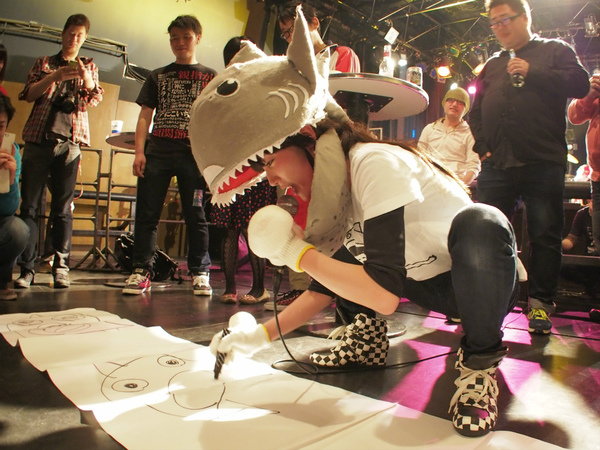 さらに、友達がメガマウスのかぶりもの作ってくれたり、メガマウス音頭の振り付けを考えてくれたり、YouTubeにあげるPVを撮ってくれたりと、しだいにあとに引けなくなってきた花井さん。いよいよサメアイドルとしての東京で活動を開始…しようとしていた矢先に事態は急変。東日本大震災によって仕事を失い、窮地に立たされたのです。