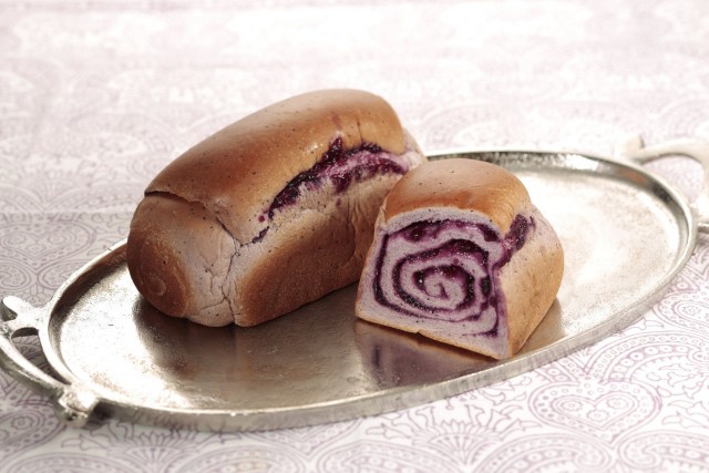 ブルーベリーをたっぷり練り込んだ生地に、たっぷりのブルーベリージャムを巻き込んだ「ブルーベリーブレッド」(600円/1本・各日限定60本・1名2本限り)を販売。※各日14時からの限定販売 ※状況により、本館地下2階中央口階段前にて整理券を配布