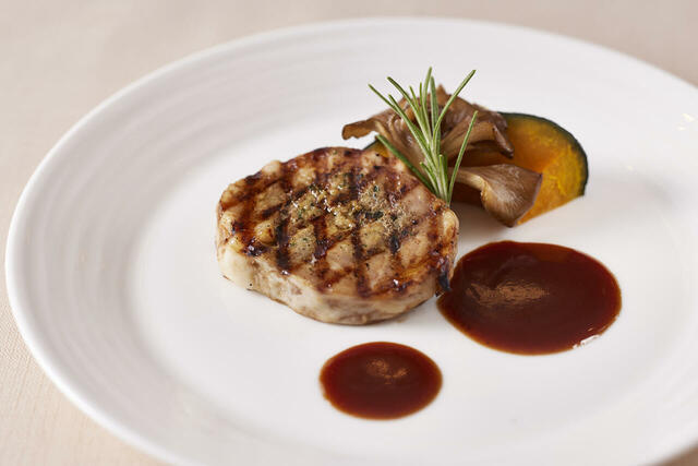 注目の料理は、目の前で仕上げる「牛肉ときのこのしゃぶしゃぶ風コンソメ仕立て」。和洋折衷の秋のメニューを堪能できるほか、「サーモンとかぼちゃのボム・ファム仕立て」や「秋鮭雪花菜和え」など、料理のバリエーションも豊富です。