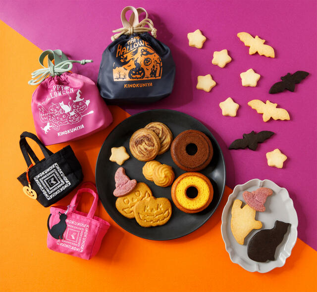 黒猫やかぼちゃをモチーフにした「ハロウィンスイーツバッグ」は、見た目も可愛いバッグに詰め込まれた、2種類のクッキーとバウムクーヘンがセットになった商品です。特にかぼちゃ風味のクッキーには、紀ノ国屋の「Kマーク」がデザインされており、ハロウィンの特別感を演出しています。