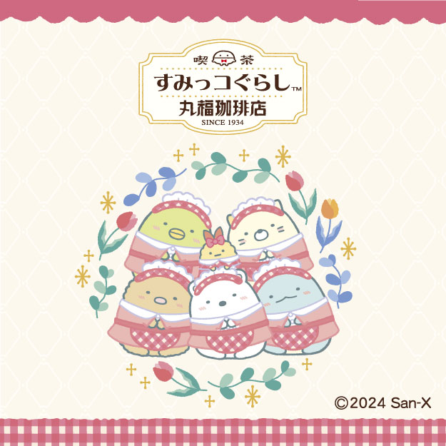 丸福珈琲店とすみっコぐらしがコラボする「丸福珈琲店×すみっコぐらしフェア」の第3弾が、2024年10⽉1⽇(火)〜11⽉30⽇(土)の期間、全国18店舗にて開催。今年は「喫茶すみっコ」をテーマに、レトロでかわいいコラボメニューやグッズが登場するほか、今回初めて丸福珈琲店のコックコート姿をしたすみっコたちのぶらさげぬいぐるみも登場します。