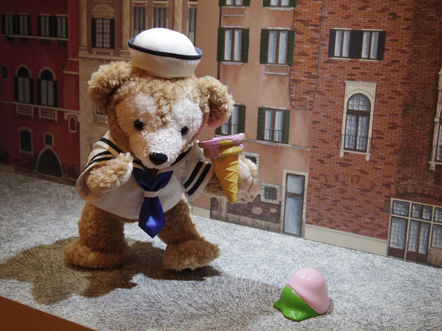 ある日、ミッキーとお散歩をしていたダッフィーは、食べていたジェラートを地面に落としてしまいます。