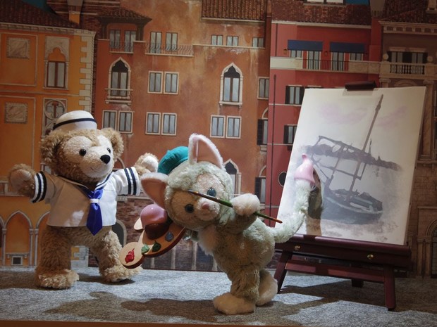 それを見ていたダッフィーは「ボクもかきたいな」「うん、いっしょにかこうよ!」。