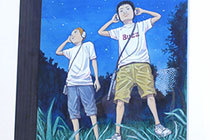 全長15mの空間に、宇宙にまつわる言葉が生まれては消える星のように出現。
