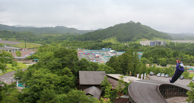 レーシングコースに向かって降下! 迫力のジップライン