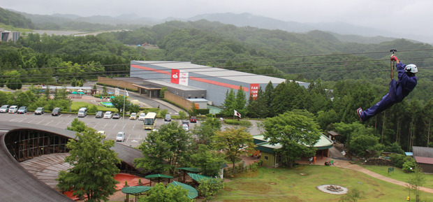 滑車の持ち手をしっかり握って、インストラクターさんの掛け声で中間地点まで一気に滑り降ります。「3,2,1」GO!