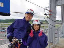 長女「すっごく楽しかった! 高いところも全然怖くなかったし、途中でとまったときも、ワイヤーは太いし、滑車もふたつあるから全然心配ないよ。むしろ景色が見渡せて楽しい~♪ もう1回やりたーい!!」