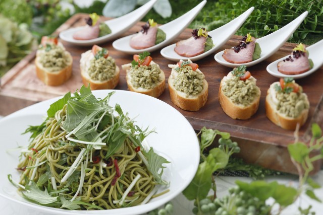 抹茶の風味がバラエティ豊かに味わえるスイーツを含むスイーツ約30種の他、フードやフルーツ約15種、アイスクリーム15種以上など、合計約60種を好きなだけ楽しめます。