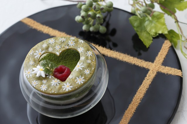 今回のスイーツビュッフェでは、“幸せを呼ぶ窓”として女性を中心に話題となっているハート型の“猪目窓(いのめまど)”などをモチーフにした抹茶スイーツや装飾が登場。