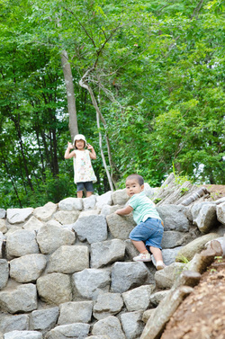トカゲの岩登り。5歳の娘は余裕しゃくしゃく。2歳9ヶ月の息子も、がんばってクリア!
