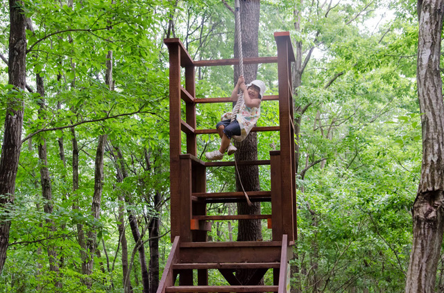 森の中に入っても、岩壁をよじ登れたり、スパイダーロープがあったりと、こどもが一度は「やってみたい!」と思うようなアトラクションが、あちこちにあります。