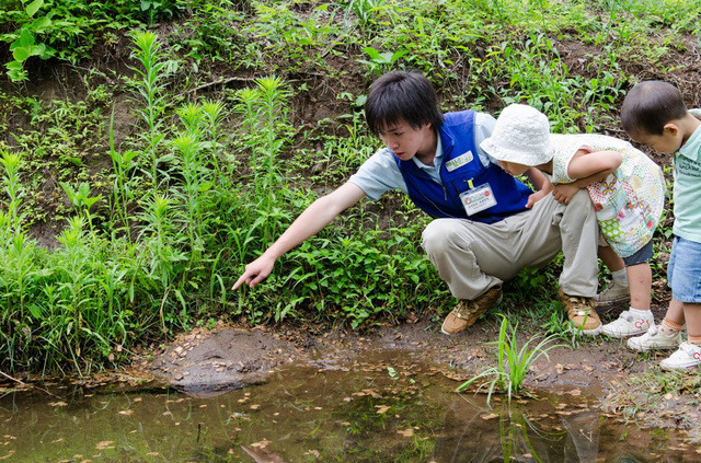 ところが、「遊びの森」には、森の生き物に詳しいガイドがいて、子どもたちにいろいろと教えてくれるんです。