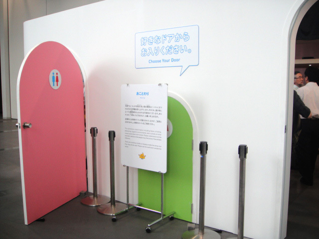 会場へ入ると、まずは自動開閉式の日本のトイレが「おもてなし」してくれました。その芸術作品のような佇まいに、なぜか息子は「写真撮りたい!」と熱狂。