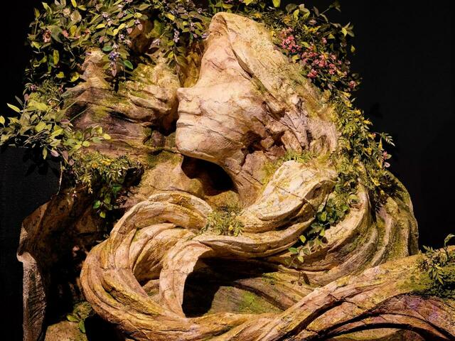 ファンタジースプリングスで実際に目にする様々なキャラクターをかたどった岩の模型や、キャストが着用しているコスチュームも展示し、エリアの魅力が体感できます。