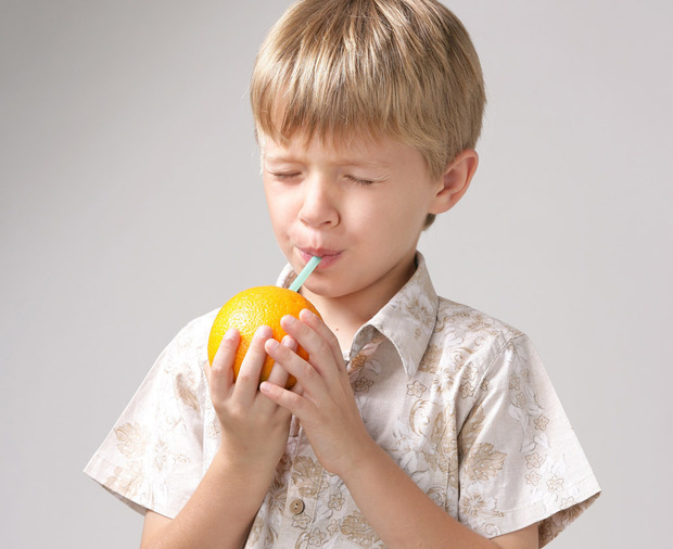 「おかしなグレフルチューチュー+オレンジ」なら、グレープフルーツやオレンジにストローを直接挿してハンドルを約1分回すだけで、絞りたて100%ジュースができちゃうんです。