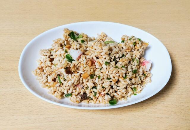 お米は中華料理店顔負けのパラッとした仕上がりで、各具材がひと口ごとに食感の違いを生んでいます。コクのあるソースだけでなく、香味油やホタテエキスなどの豊かな風味が感じられて、食べる手が止まらなくなること必至。余裕があれば、フライパンで調理するのがおすすめです。