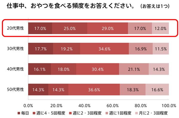 仕事中におやつをよく食べる人は半数以上