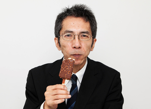 森永チェリオのサイトで、「おやつと脳のヒラメキ」との関係を紹介している脳科学者・澤口先生。