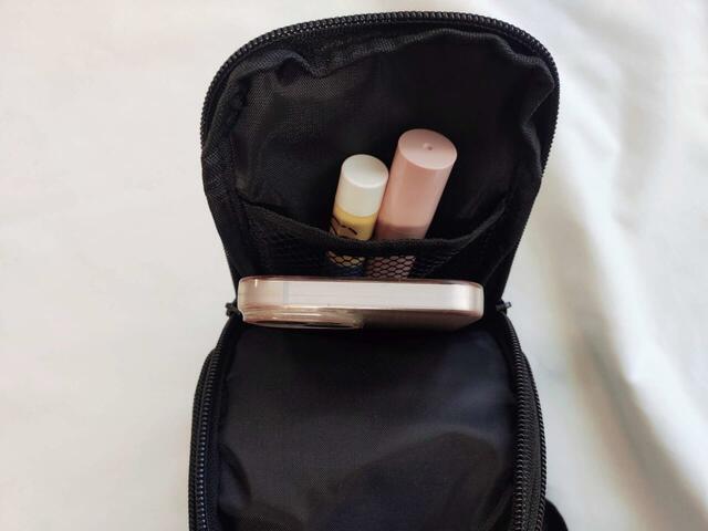 前側にはメッシュポケットがあり、リップなどの小物を入れられるサイズ感です。