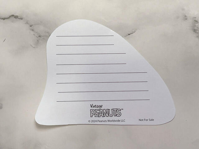 メモ用紙は20枚入りで、かわいいスヌーピーのダイカットデザイン。