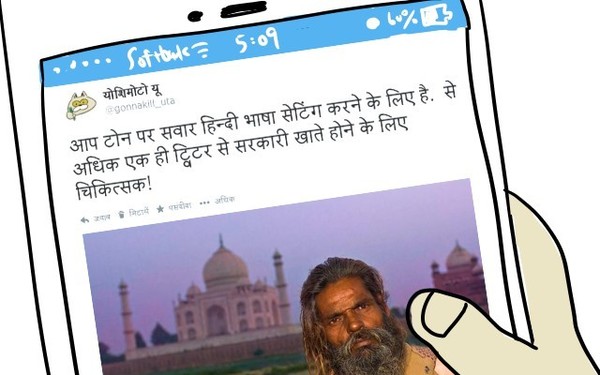 Twitterに依存し過ぎると全世界に自分をアピールしたくなり、ツイートの言語そのものが“ヒンディー語”になってしまうことがあります。
