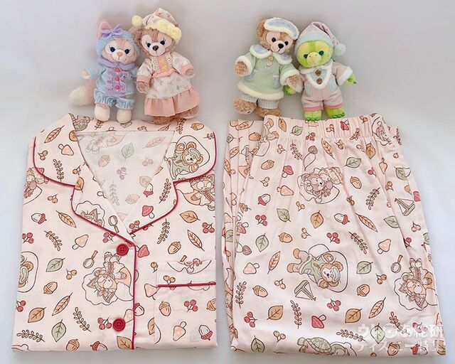 写真だと、ダッフィーたちの周りのキノコや葉っぱなどが目立って多少ごちゃっと見えたのですが、淡いピーチピンクの色も顔映りがよく、着た方がずっと気分が上がってお気に入り。