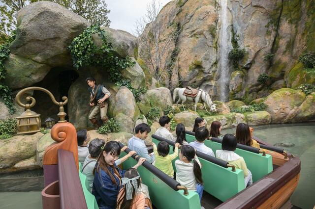 ゆっくりとボートに揺られながら『塔の上のラプンツェル』の世界をのんびり体験できる、小さな子どもでも安心のアトラクションです。