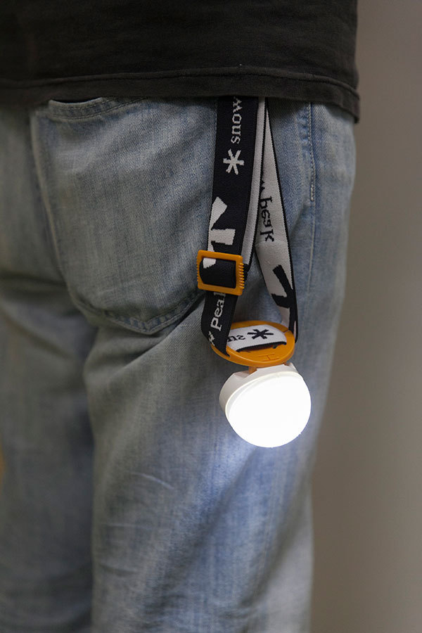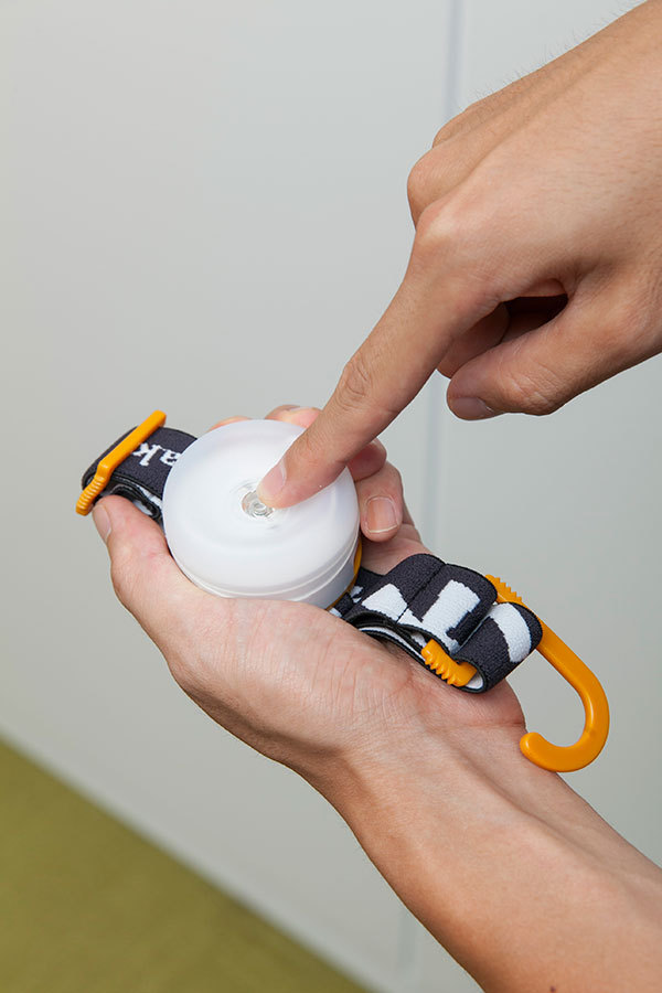 まずヘッドライトとして使えるのはもちろん、ぶら下げることでミニランタンとしても使えます。光の強さは無段階に調整することができ、ストロボモードも搭載しています。ユニークなのはライト部分がシリコンでできているところ。真ん中を押し込むことで、集光モードと散光モードを切り替えることができます。