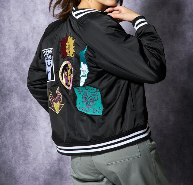 背中を彩る『101匹わんちゃん』のクルエラ、『ヘラクレス』のハデス、『リトル・マーメイド』のアースラ、『眠れる森の美女』のマレフィセント、『白雪姫』の女王、『ライオン・キング』のスカーのアップリケが、存在感抜群の一着です。