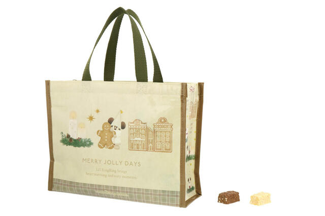 リルリンリンのクリスマス風景が描かれた白いバッグです。