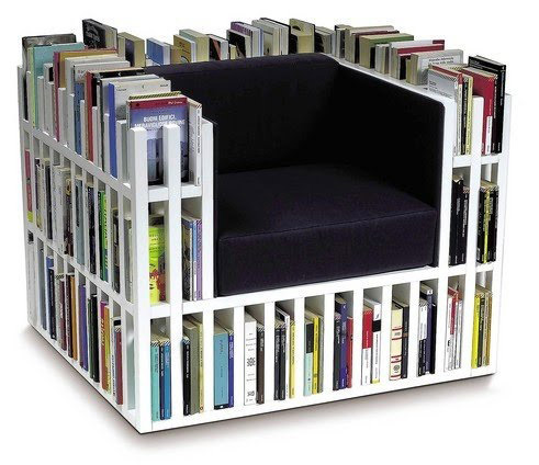 本はイスに座って読むものだから、なるほど、イスと一体化させちゃいえばいいんだ。
