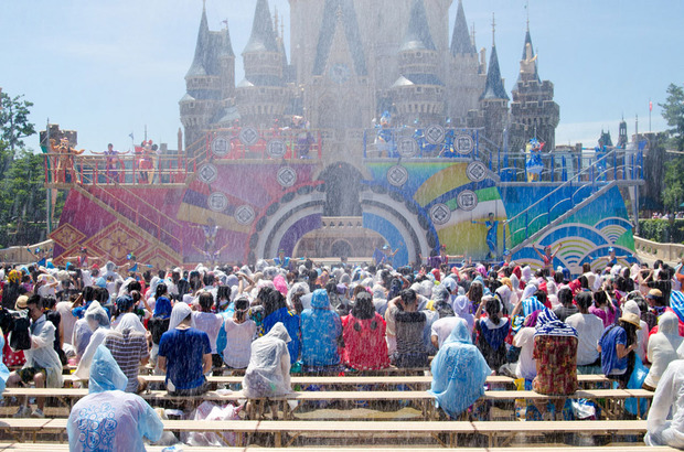 「雅涼群舞」では、シンデレラ城前の鑑賞エリアは、下着までびっしょりになるほど濡れる ©Disney