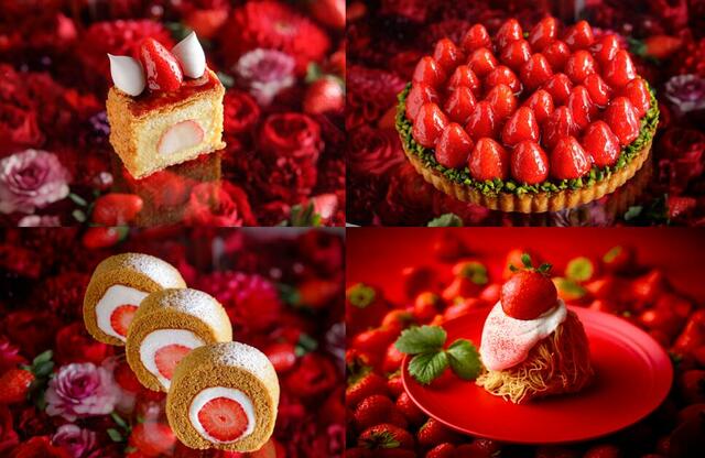 登場するあまおうスイーツは全10種以上。「博多あまおう」の弾けるようなみずみずしい甘さと、サクサクのパイ生地、特製のカスタードクリームが相性抜群の『あまおうナポレオンパイ』、注文してから目の前で仕上げてくれる『生絞りモンブラン"あまおう”』に加え、ロールケーキやタルトなど定番のいちごスイーツもビュッフェメニューにラインナップされます。